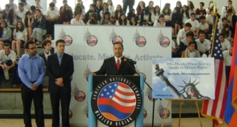 http://www.abcnews.go.com/Blotter/story?id=4990933&page=1 ANCA Welcomes Obama Clinching Democratic Presidential Nomination ANCA Endorsed Candidate in January During Heat of Presidential Primary Contest WASHINGTON, DC - The Armenian National Committee of America (ANCA) applauded Presidential hopeful Barack Obama's hard-fought victory in securing a majority of the delegates needed to become the presumptive Democratic nominee for President of the United States. “As we stated back in January, during the heat of this hotly contested and highly competitive primary season, Senator Obama clearly represents the candidate best positioned to bring about fundamental change in how the United States addresses Armenian American issues,” said ANCA Executive Director Aram Hamparian. “We welcome this powerful milestone in his campaign for the Presidency and join with Armenian Americans from across the country in congratulating him for this great and historic success. At the same time, we want to share our respect for Senator Clinton, our profound admiration for the tremendous race she ran, and our appreciation for her strong and steady support for issues of special concern to our community.” Read More. . . ANCA Confront Turkish Gag Rule on Armenian Genocide Recognition "It's time to end the gag rule on the Armenian Genocide and send an Ambassador to Armenia who can speak truth to power" - ANCA Board Member Raffi Hamparian Los Angeles, CA - Armenian National Committee of America (ANCA) and Armenian Youth Federation (AYF) leaders launched a multifaceted nationwide campaign today urging that the next U.S. Ambassador to Armenia speak truthfully about the Armenian Genocide. Announced at an ANCA Western Region organized press conference in Los Angeles, CA, held at Rose and Alex Pilibos Armenian School, the effort is part of the "End Turkey's Gag Rule" campaign, calling attention to Turkey's multi-million dollar worldwide Genocide denial drive. With hundreds of Pilibos students gathered behind the podium, Armenian National Committee of America (ANCA) Board Member Raffi Hamparian and Armenian Youth Federation (AYF) Central Executive Representative Vache Thomassian addressed the media regarding the campaign and stated that Armenia has had no U.S. Ambassador for over a year because President Bush refuses to send a diplomat there who will tell the truth about the Armenian Genocide. Read More. . . |
