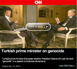Talking on CNN, he's happy at having dodged U.S. recognition of the Armenian Genocide.